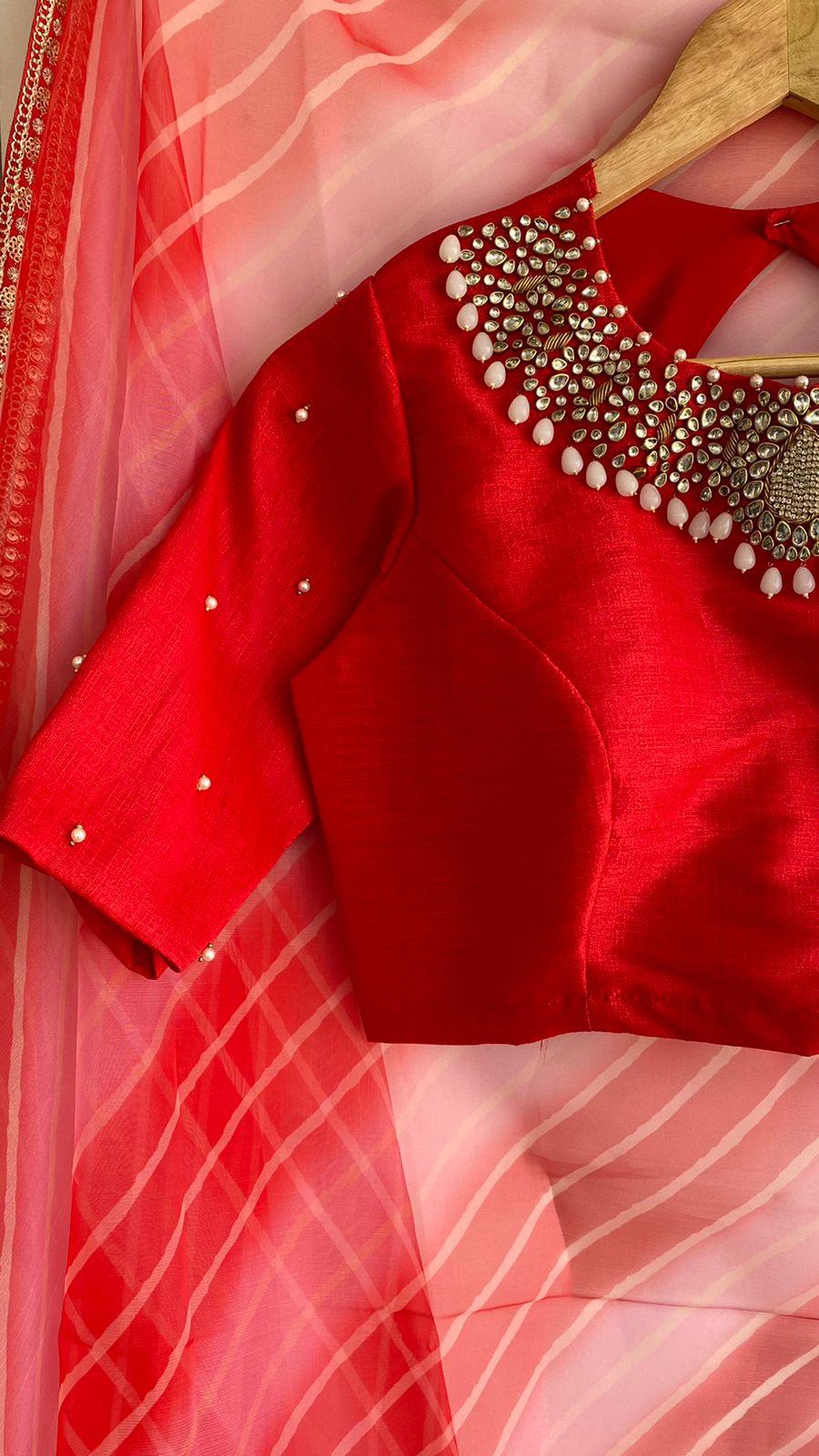 Red Jewel Neck Hand worked blouse