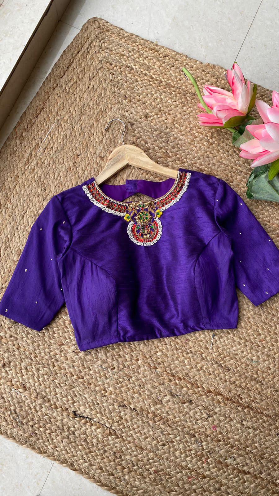 Purple Silk blouse comes with threads exclusive intricate hand worked JEWEL NECK blouse for designer sarees.